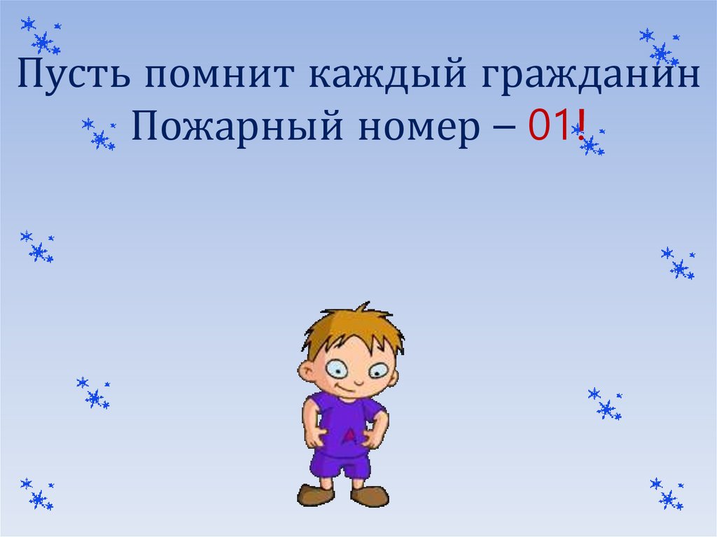 Пусть помнит каждый гражданинПожарный номер – 01!