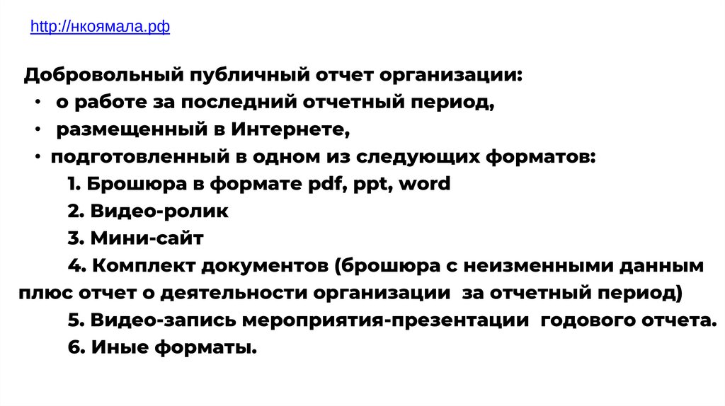 http://нкоямала.рфДобровольный публичный отчет организации: