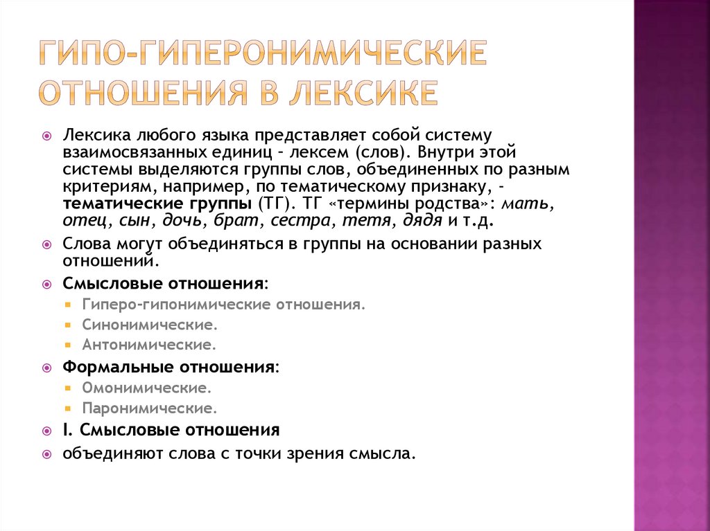 Лексика любого языка представляет собой системувзаимосвязанных единиц – лексем (слов). Внутри этой