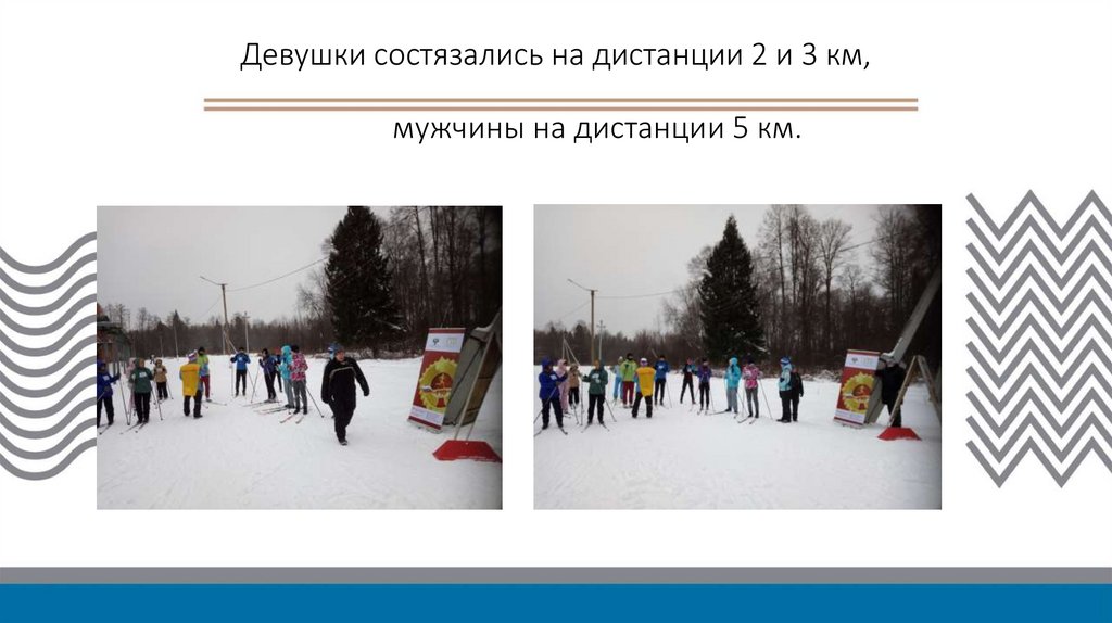 Девушки состязались на дистанции 2 и 3 км,мужчины на дистанции 5 км.