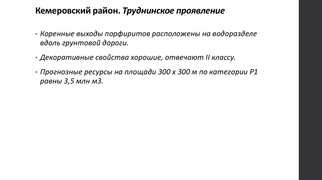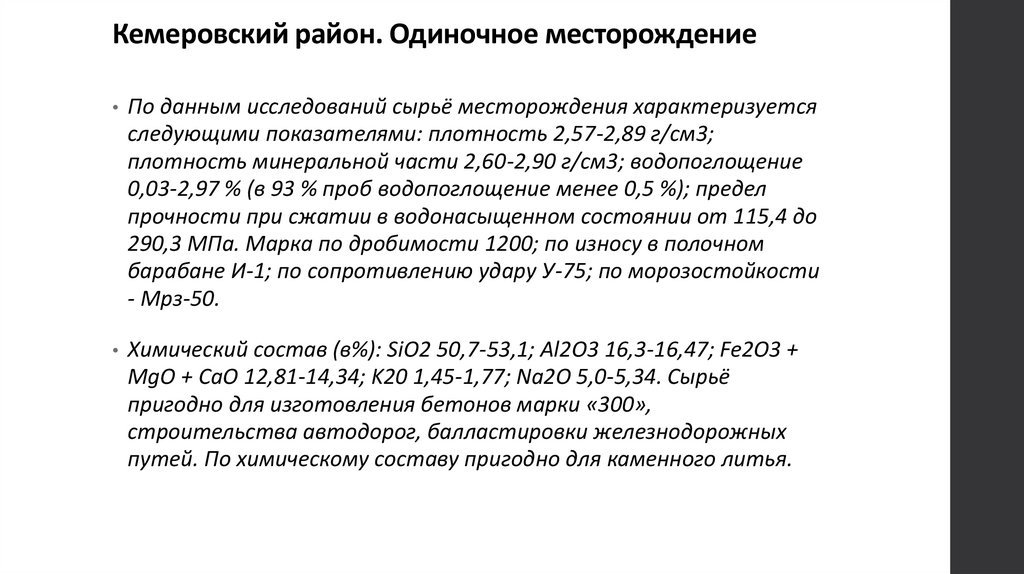 Кемеровский район. Одиночное месторождениеПо данным исследований сырьё месторождения характеризуется