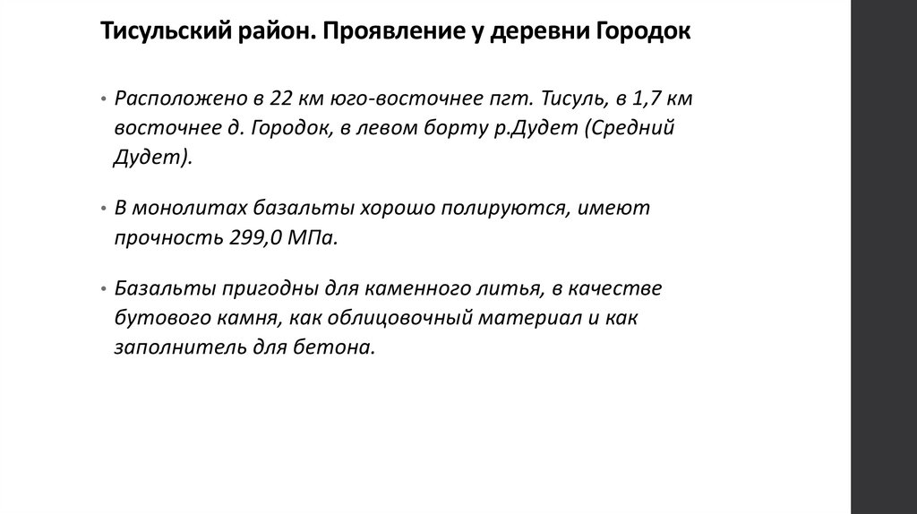 Тисульский район. Проявление у деревни ГородокРасположено в 22 км юго-восточнее пгт. Тисуль, в 1,7 км