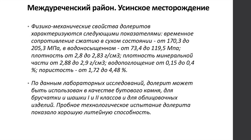 Междуреченский район. Усинское месторождениеФизико-механические свойства долеритов