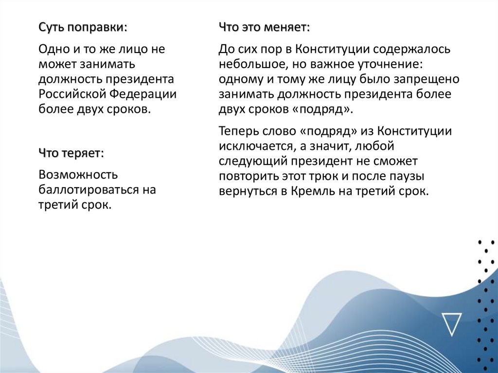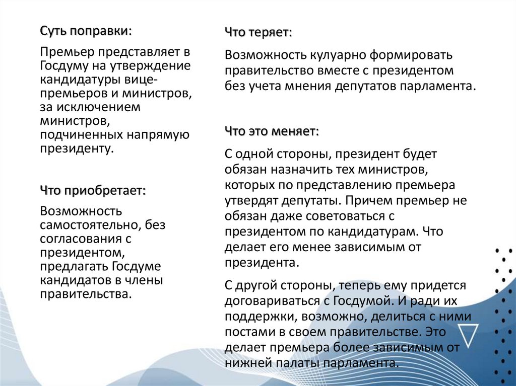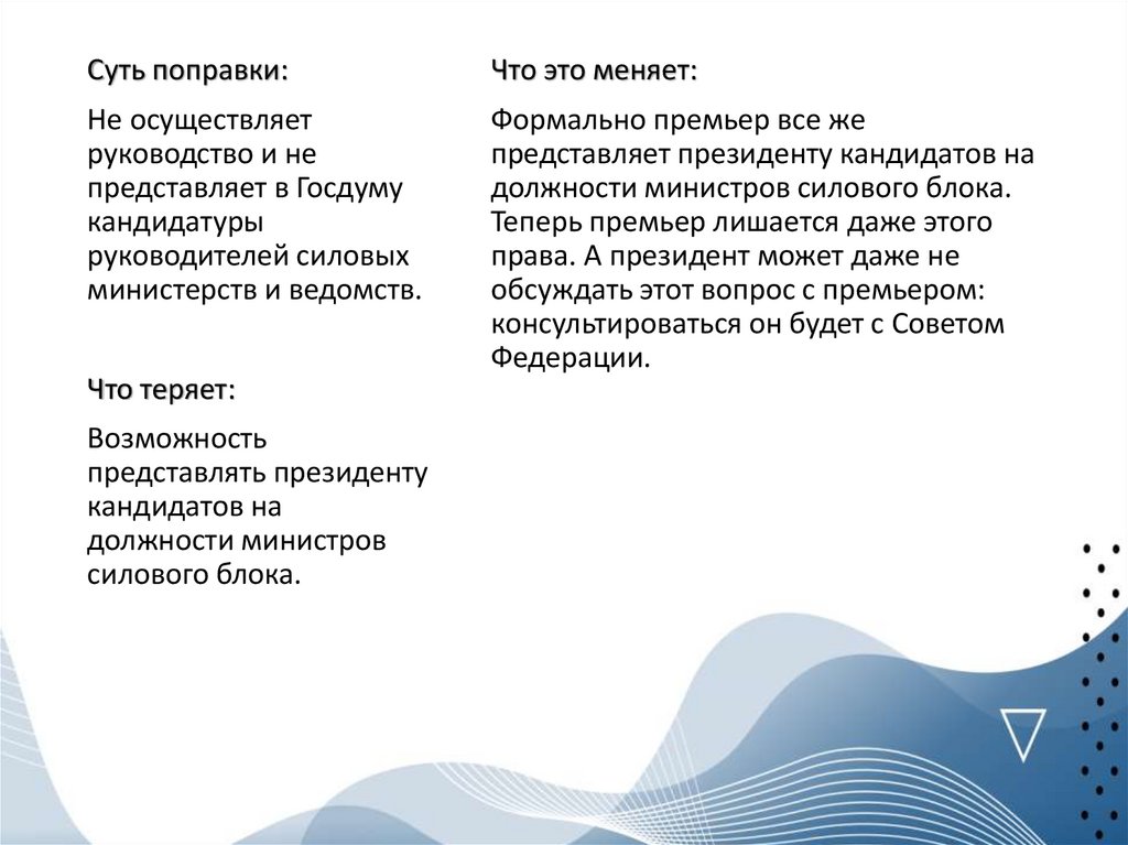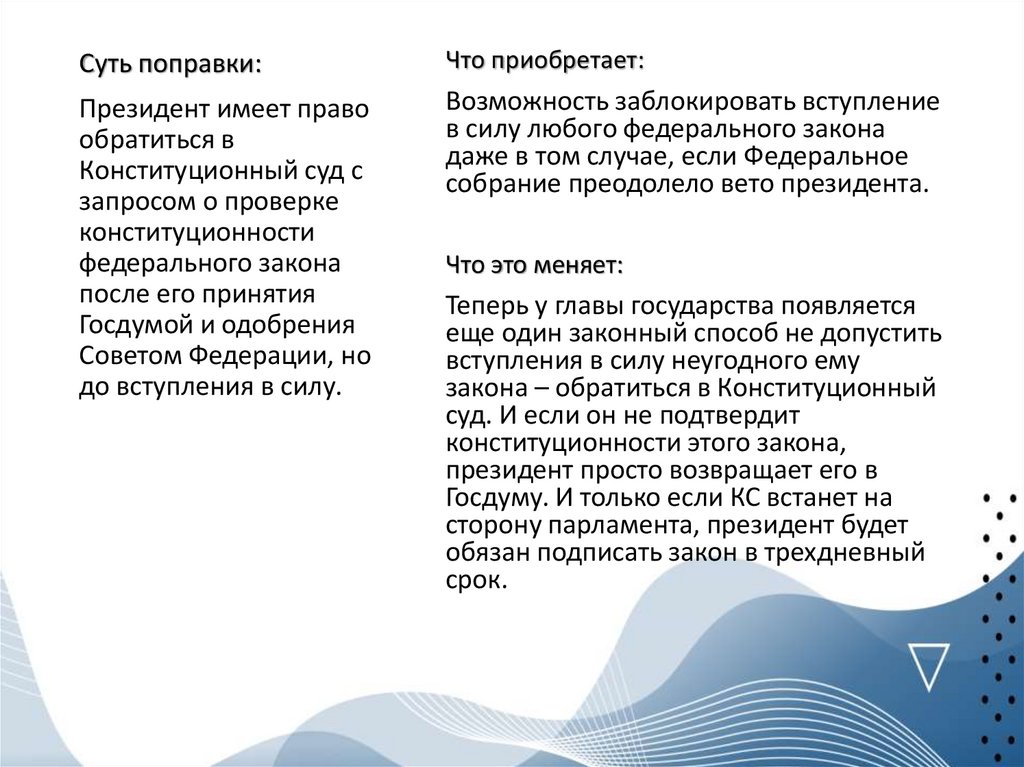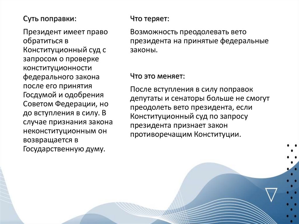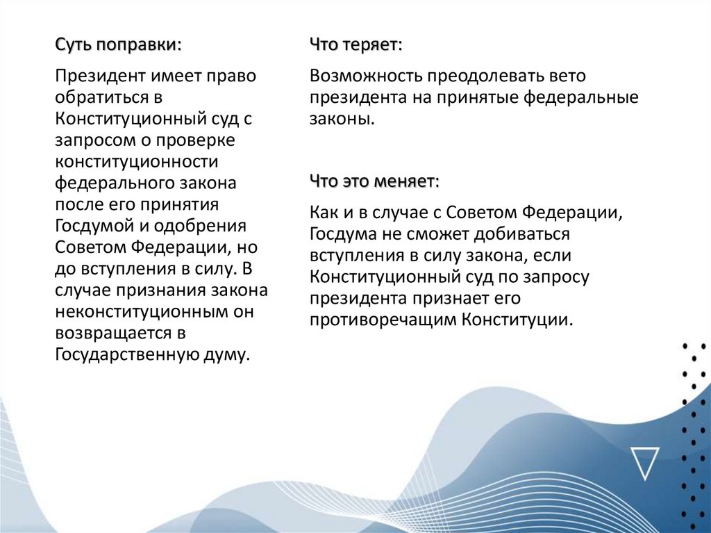 Суть поправки:Что теряет: