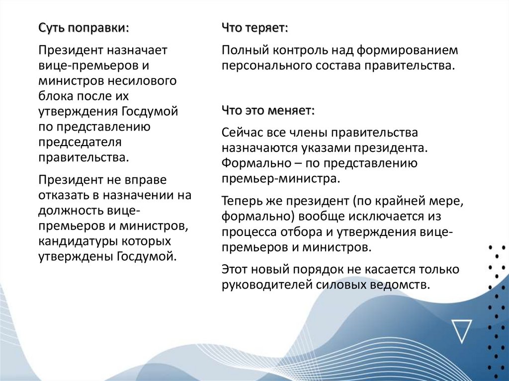 Поправки не лишают президента этих