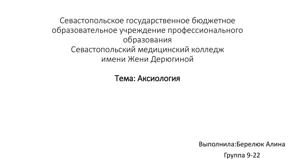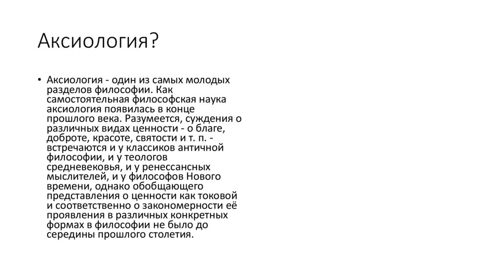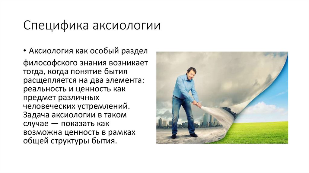 • Аксиология ищет спасительный выход изпорочной дилеммы на другом пути. Если