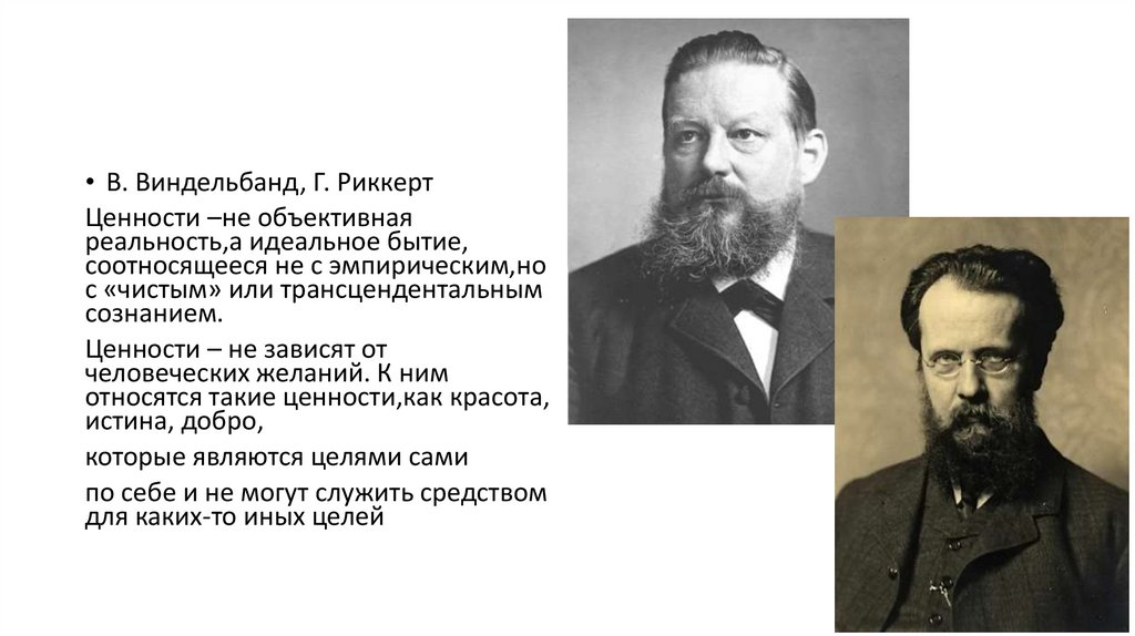 • В. Виндельбанд, Г. РиккертЦенности –не объективная