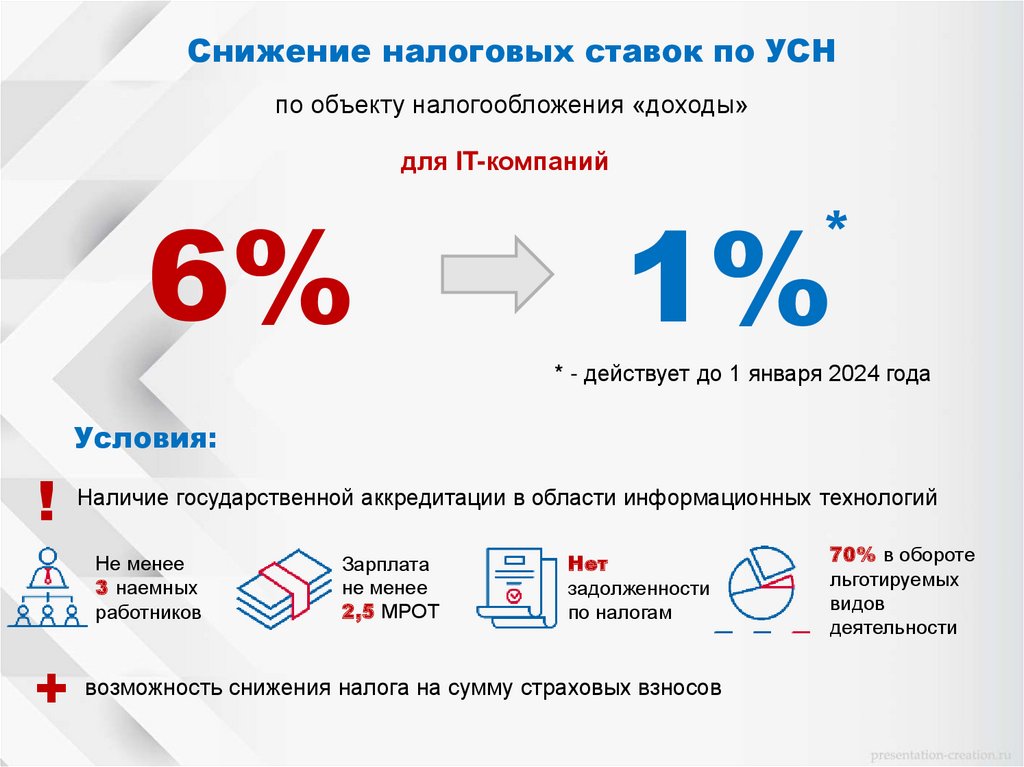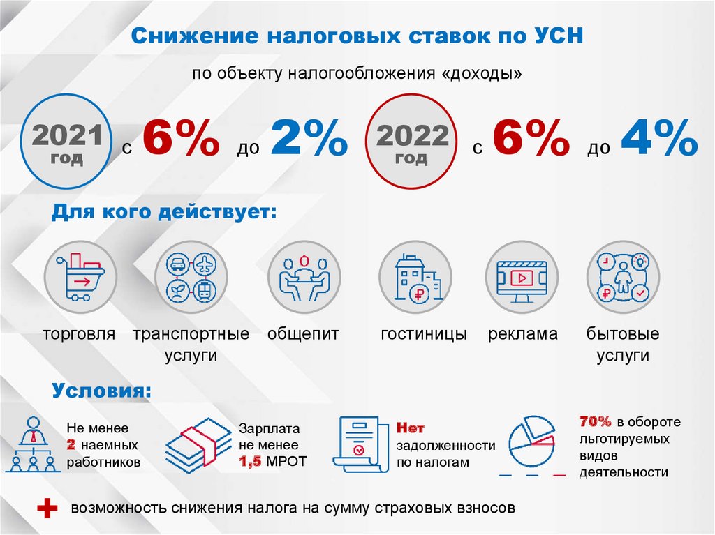 Снижение налоговых ставок по УСНпо объекту налогообложения «доходы»