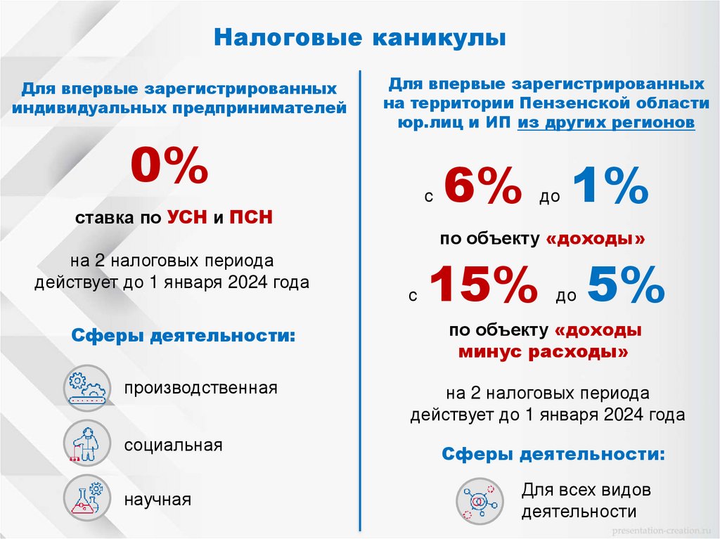 Налоговые каникулыДля впервые зарегистрированных