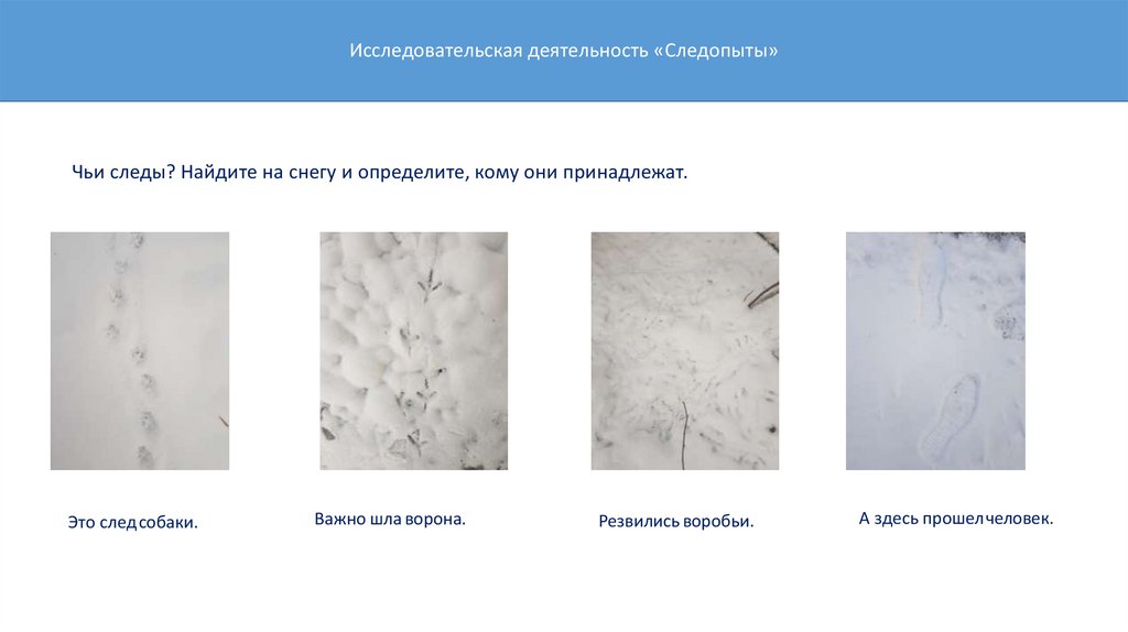 Исследовательская деятельность «Следопыты»Чьи следы? Найдите на снегу и определите, кому они принадлежат.