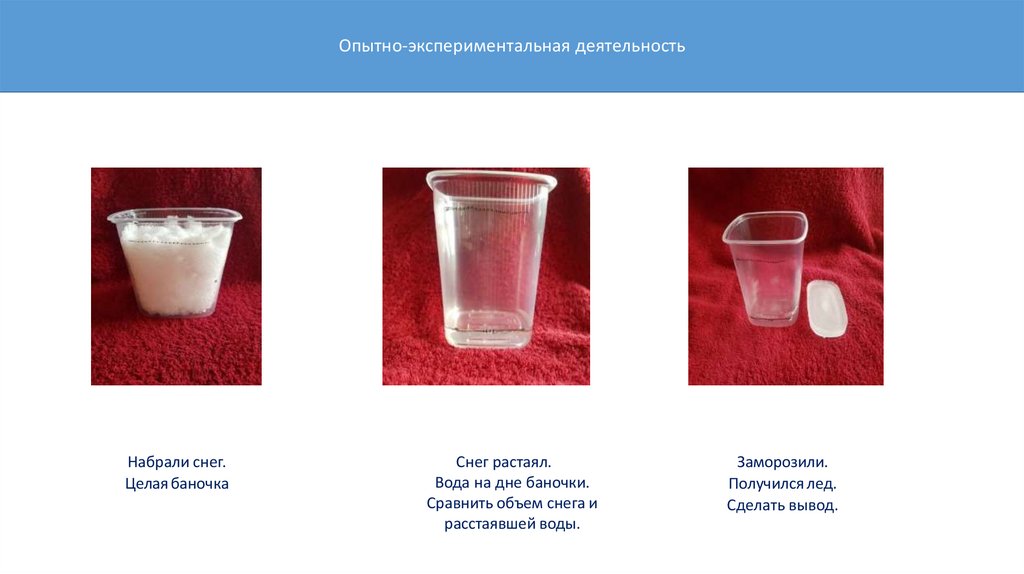 Опытно-экспериментальная деятельностьНабрали снег.