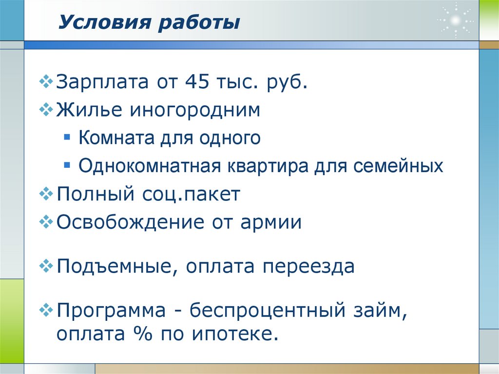 Условия работыЗарплата от 45 тыс. руб.