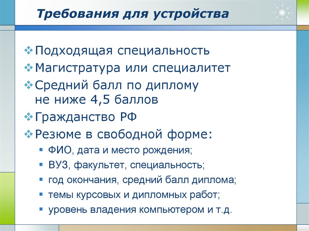 Требования для устройстваПодходящая специальность