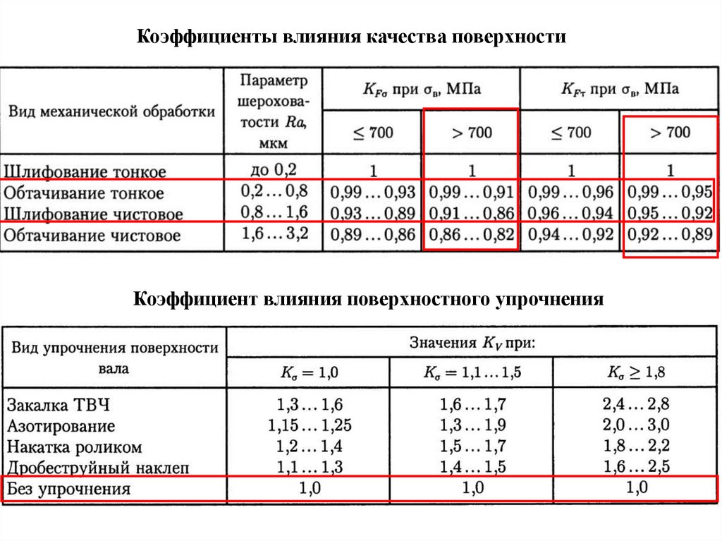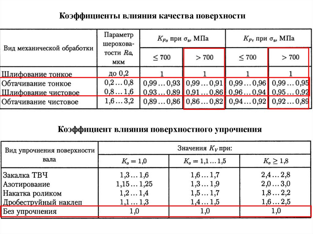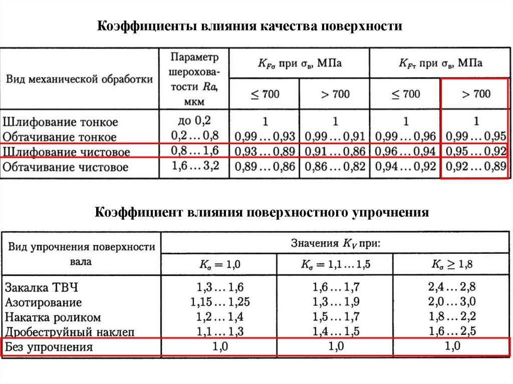 Коэффициенты влияния качества поверхностиКоэффициент влияния поверхностного упрочнения