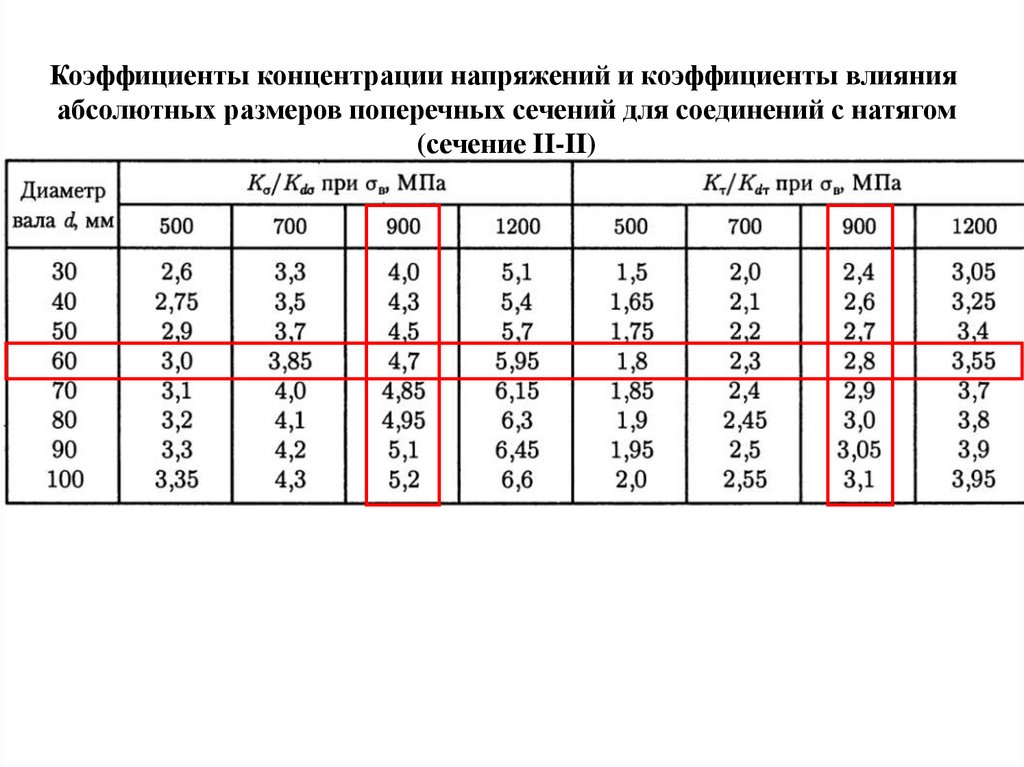 Коэффициенты концентрации напряжений и коэффициенты влиянияабсолютных размеров поперечных сечений для соединений с натягом