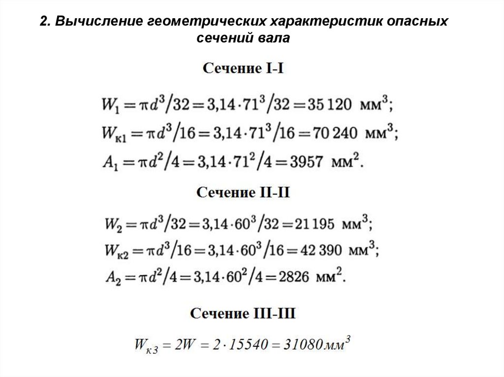 2. Вычисление геометрических характеристик опасныхсечений вала