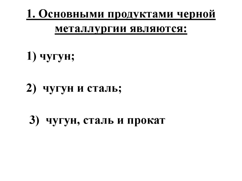1. Основными продуктами чернойметаллургии являются: