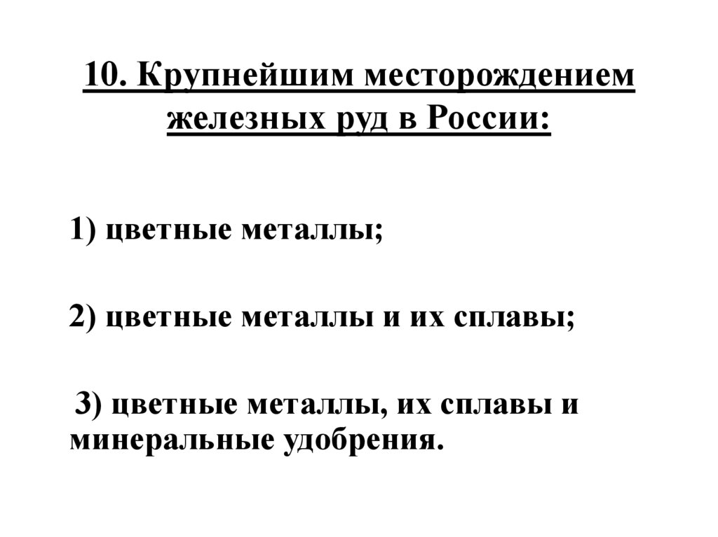 10. Крупнейшим месторождениемжелезных руд в России: