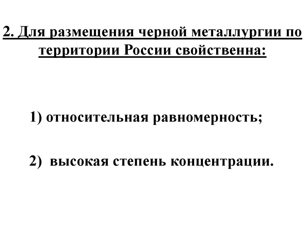 2. Для размещения черной металлургии потерритории России свойственна: