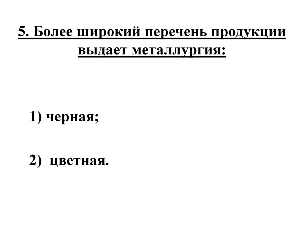 5. Более широкий перечень продукциивыдает металлургия:
