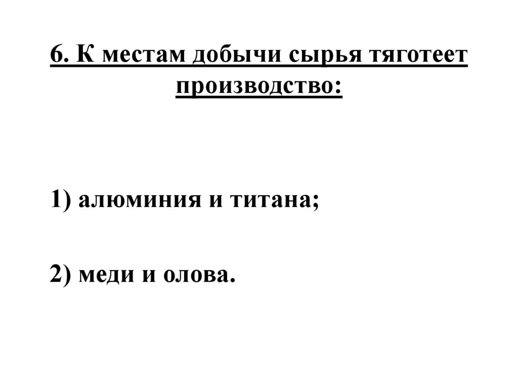 6. К местам добычи сырья тяготеетпроизводство: