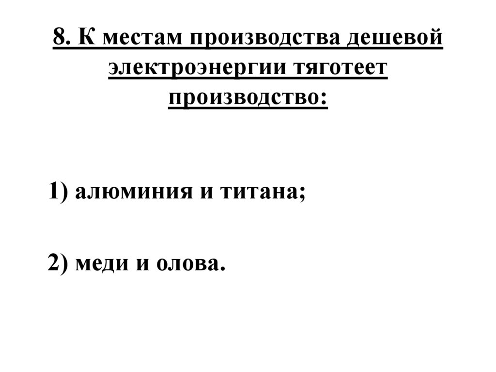 8. К местам производства дешевойэлектроэнергии тяготеет