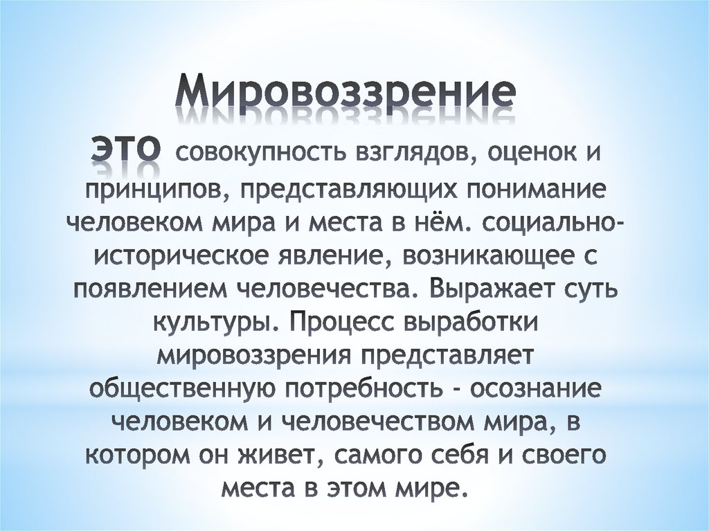 мировоззрения и одновременно как его