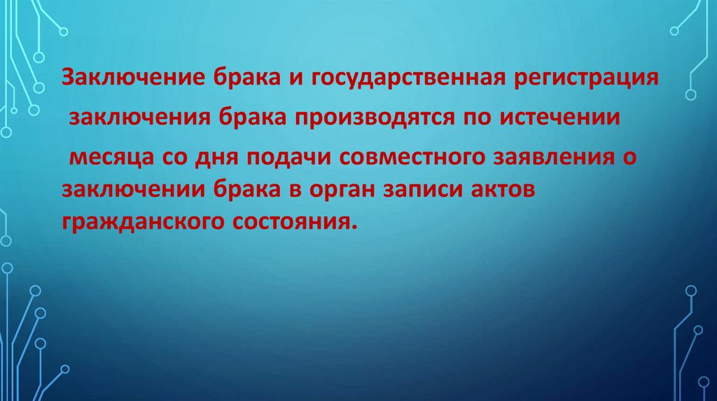 Заключение брака и государственная регистрациязаключения брака производятся по истечении