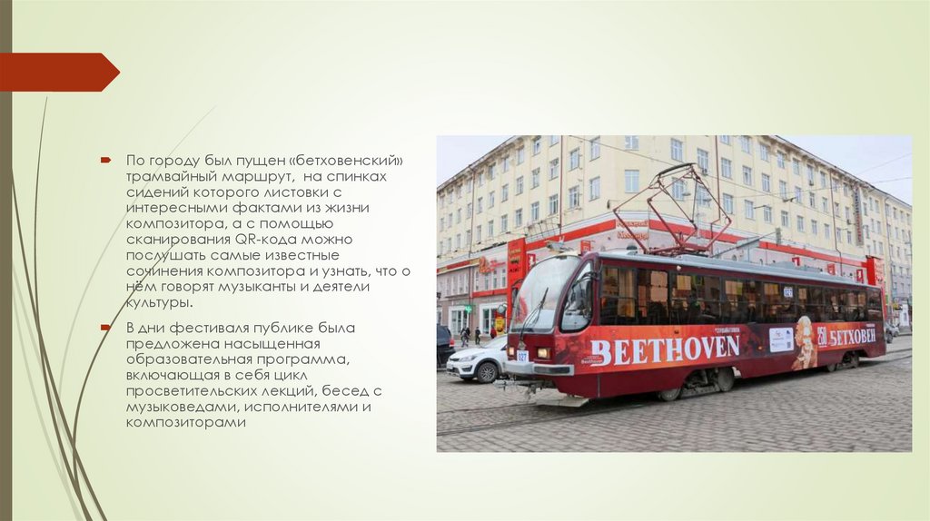 По городу был пущен «бетховенский»трамвайный маршрут, на спинках