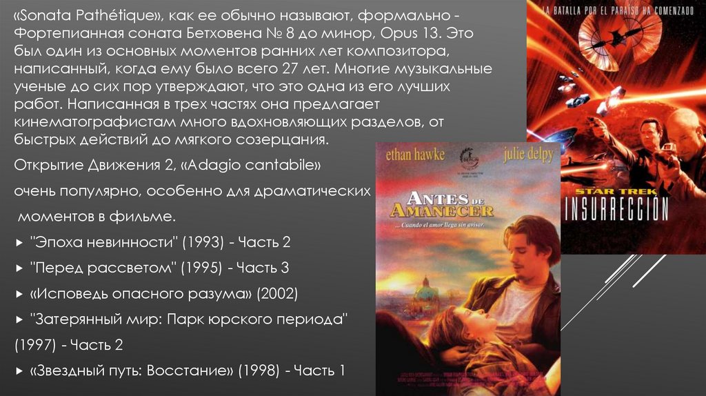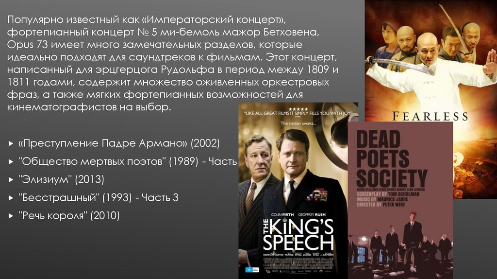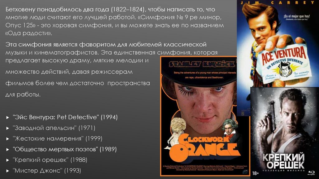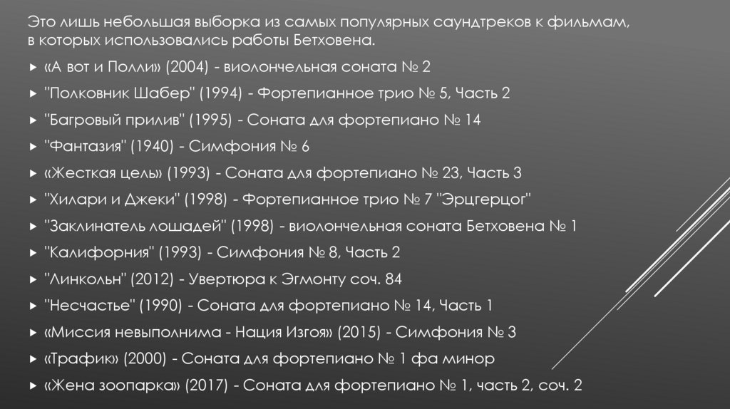 Это лишь небольшая выборка из самых популярных саундтреков к фильмам,в которых использовались работы Бетховена.