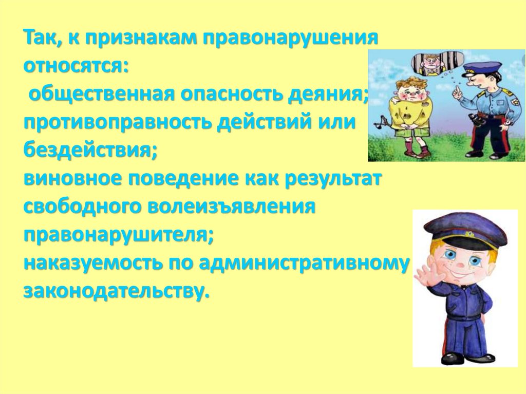 Так, к признакам правонарушенияотносятся: