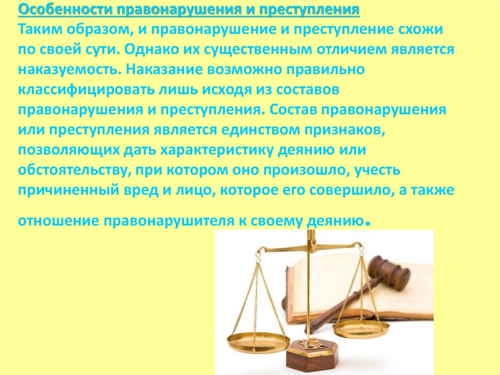 Особенности правонарушения и преступленияТаким образом, и правонарушение и преступление схожи