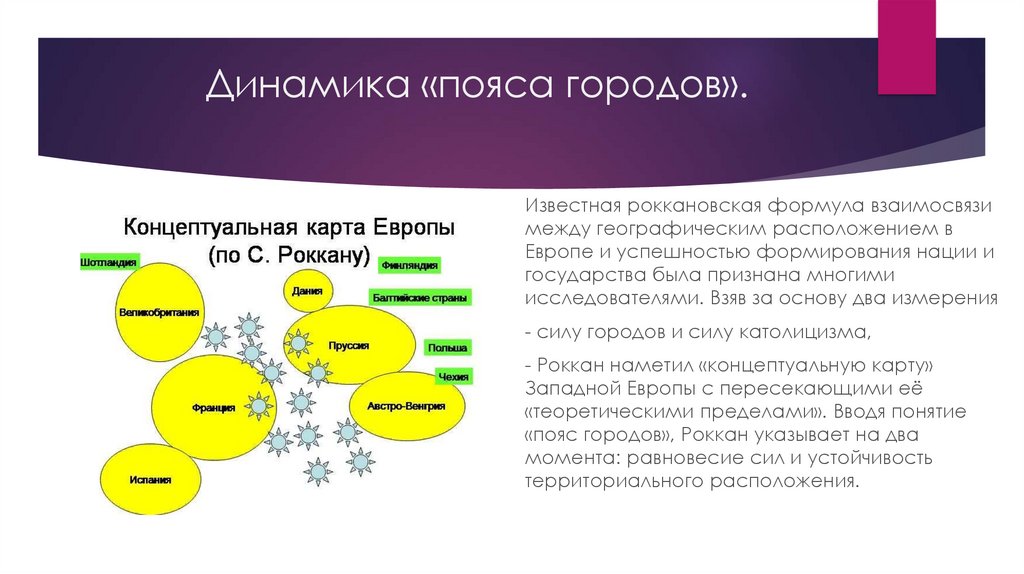 Динамика «пояса городов».Известная роккановская формула взаимосвязи