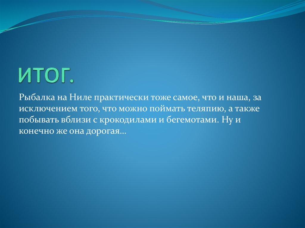 Рыбалка на Ниле практически тоже самое, что и наша, заисключением того, что можно поймать теляпию, а также