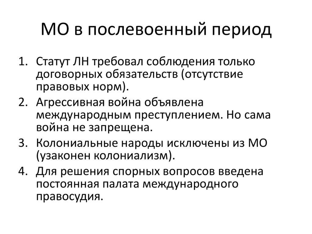 МО в послевоенный период1. Статут ЛН требовал соблюдения только