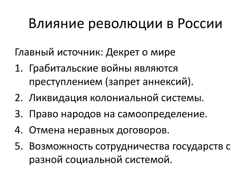 Влияние революции в РоссииГлавный источник: Декрет о мире