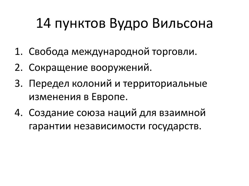 14 пунктов Вудро Вильсона1. Свобода международной торговли.