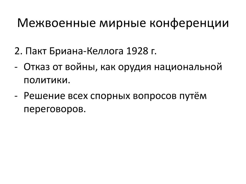 Межвоенные мирные конференции2. Пакт Бриана-Келлога 1928 г.