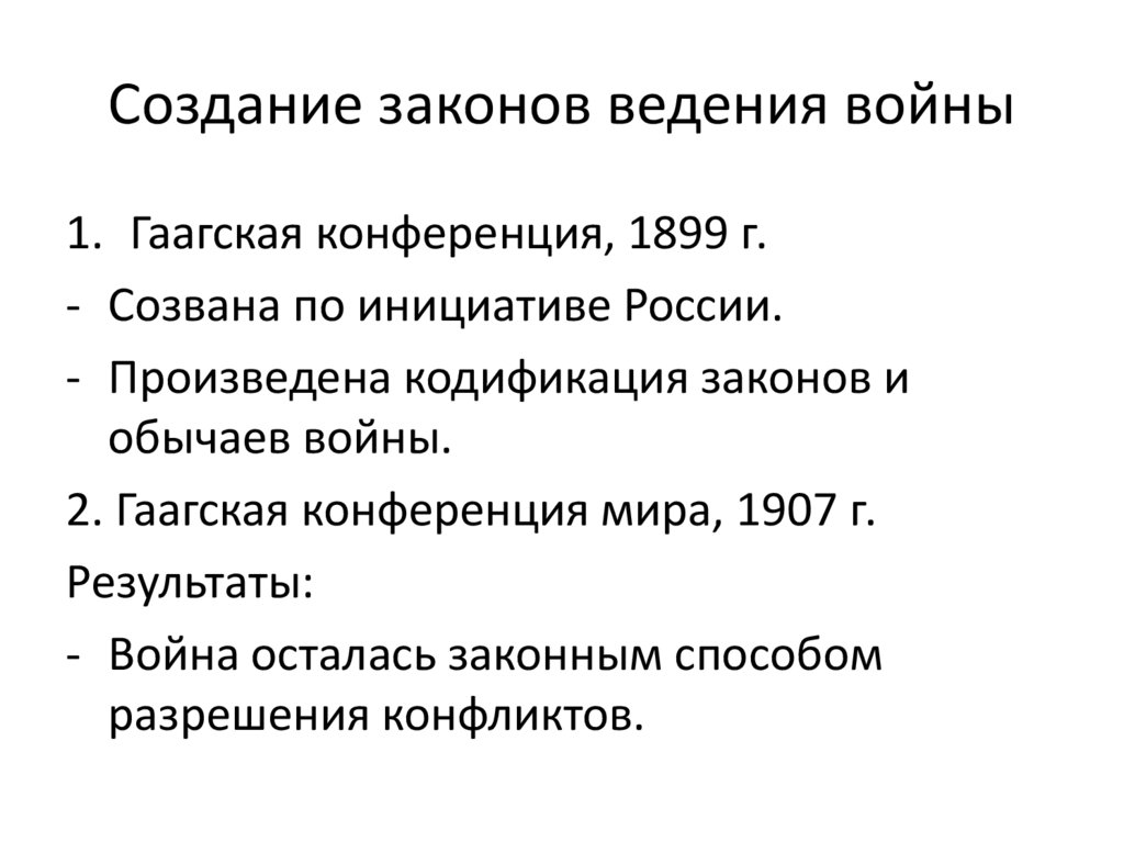 Создание законов ведения войны- Гонку вооружений остановить не удалось.