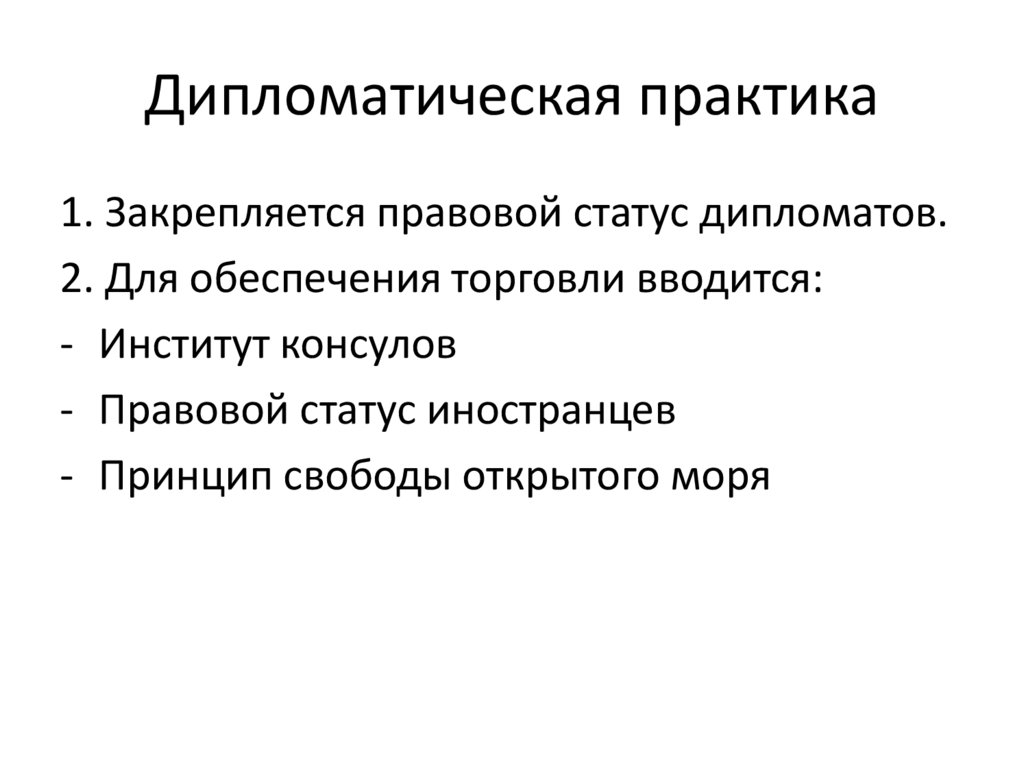 Дипломатическая практика1. Закрепляется правовой статус дипломатов.