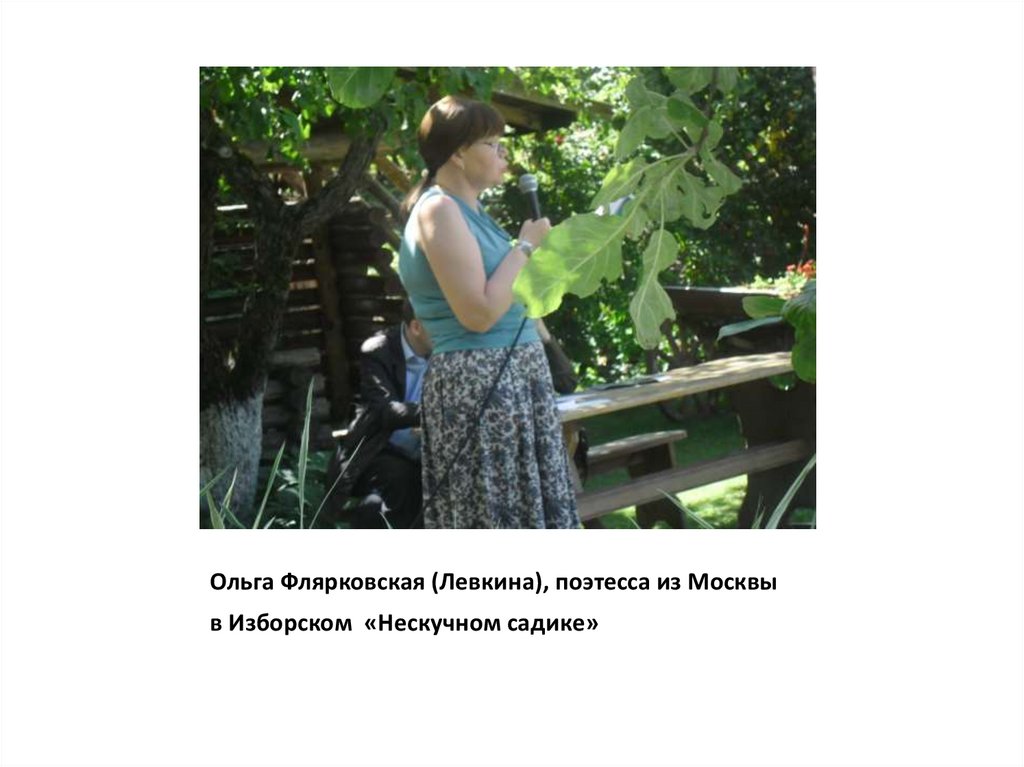Ольга Флярковская (Левкина), поэтесса из Москвыв Изборском «Нескучном садике»