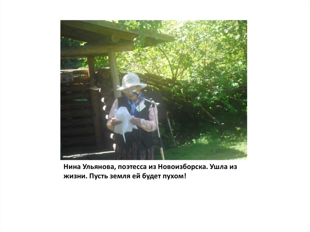 Нина Ульянова, поэтесса из Новоизборска. Ушла изжизни. Пусть земля ей будет пухом!