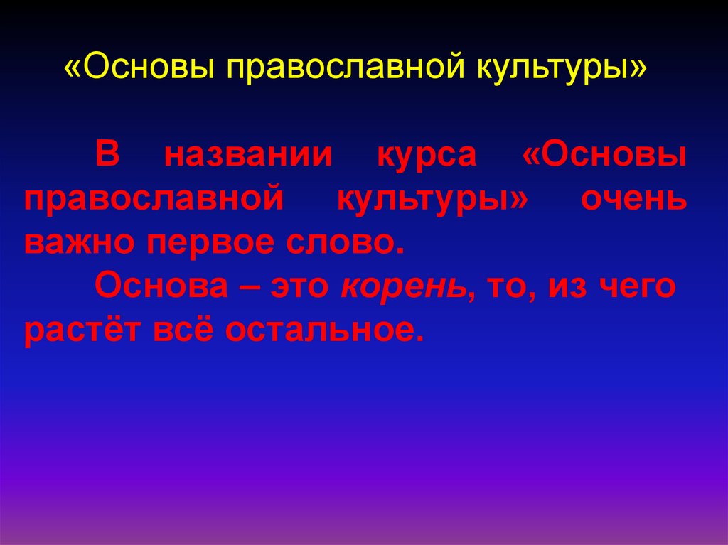 «Основы православной культуры»В названии курса «Основы