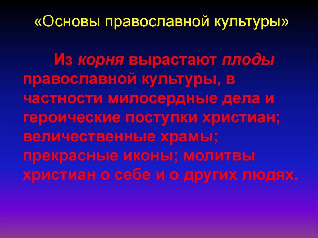 «Основы православной культуры»Из корня вырастают плоды