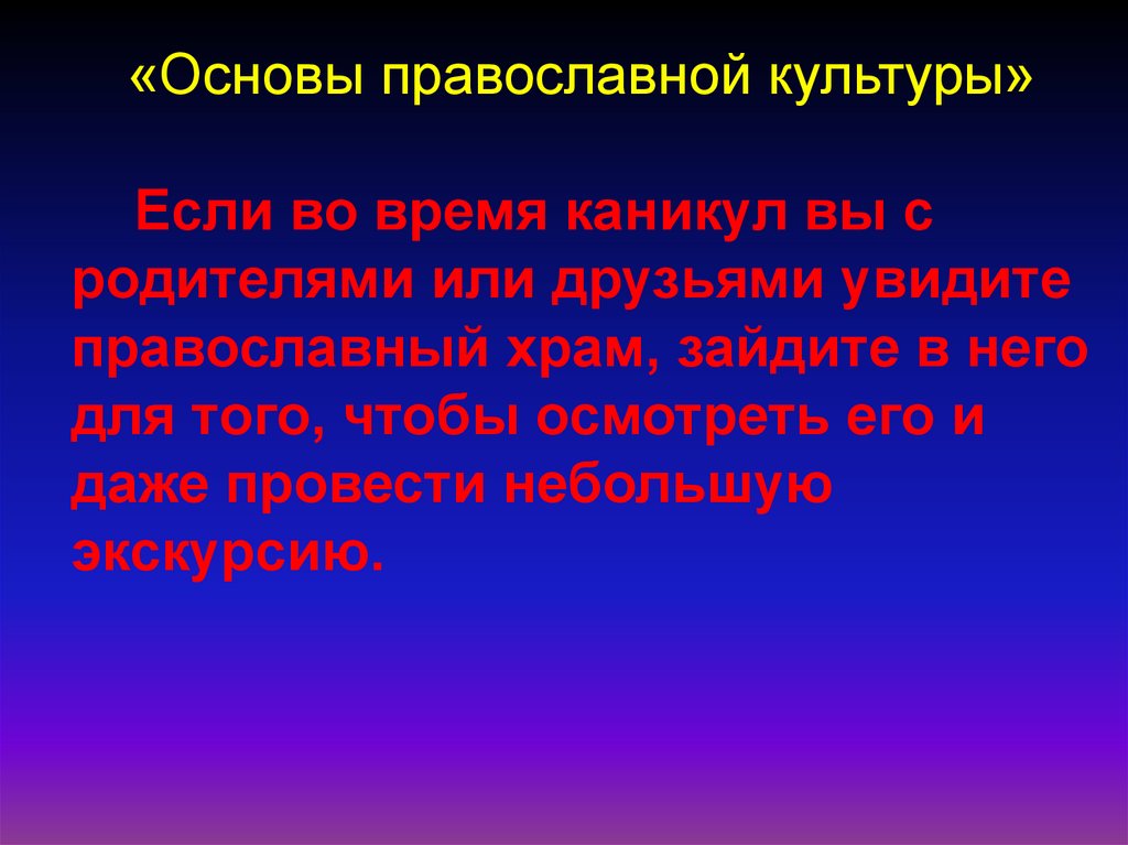 «Основы православной культуры»Если во время каникул вы с