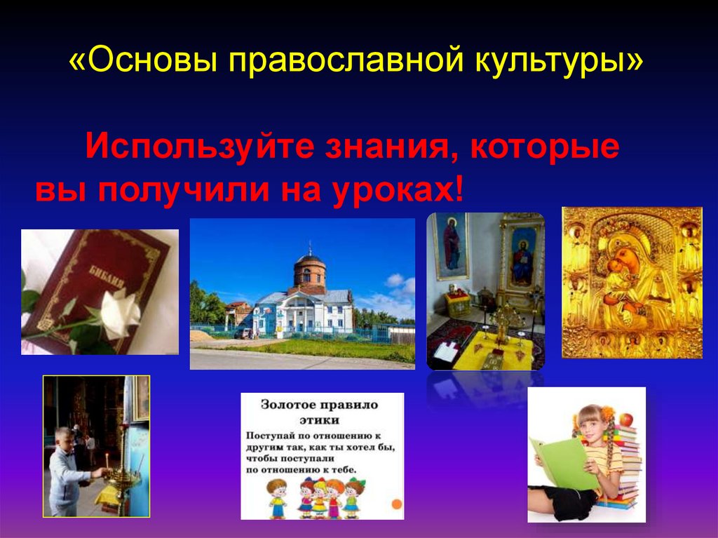 «Основы православной культуры»Используйте знания, которые