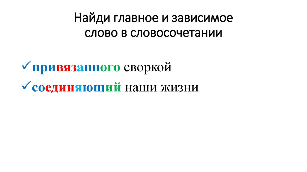 Найди главное и зависимоеслово в словосочетании