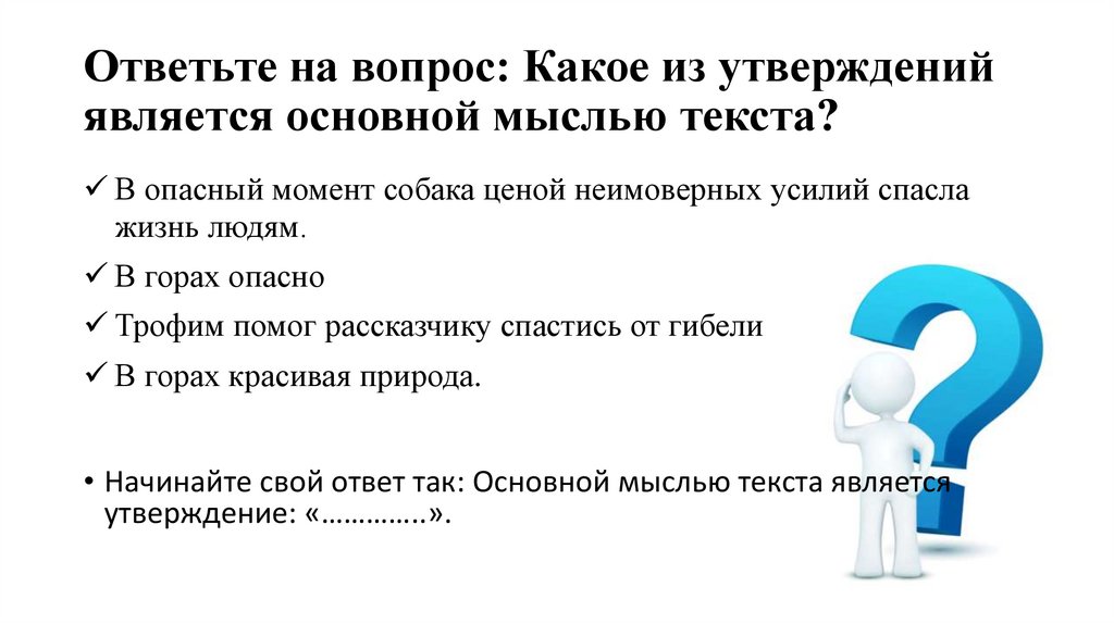 • Начинайте свой ответ так: Основной мыслью текста является