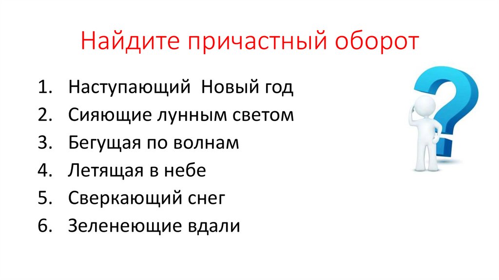 Найдите причастный оборотНаступающий Новый год