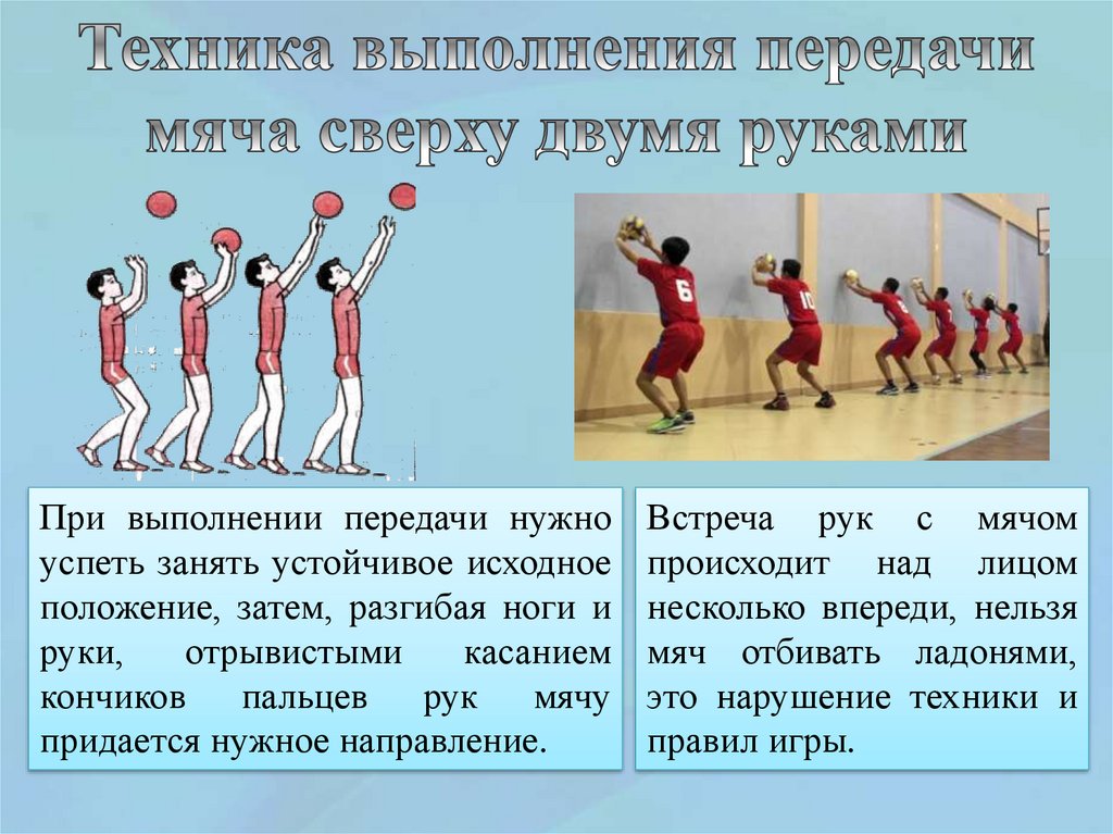 •Передача мяча сверху двумя руками составляет основу игры.•При взаимодействии нападающих для ускорения атаки и